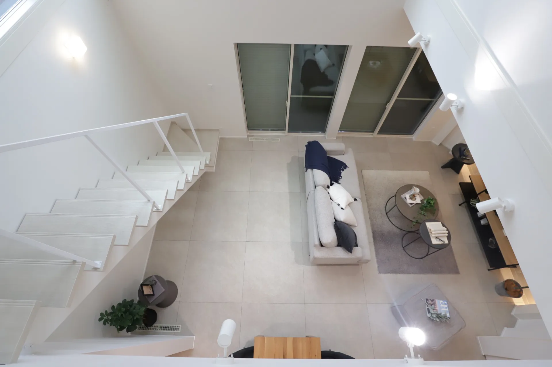 吹き抜けの最大の魅力は、空間の広がりと家族のつながりを同時に生み出すことです。