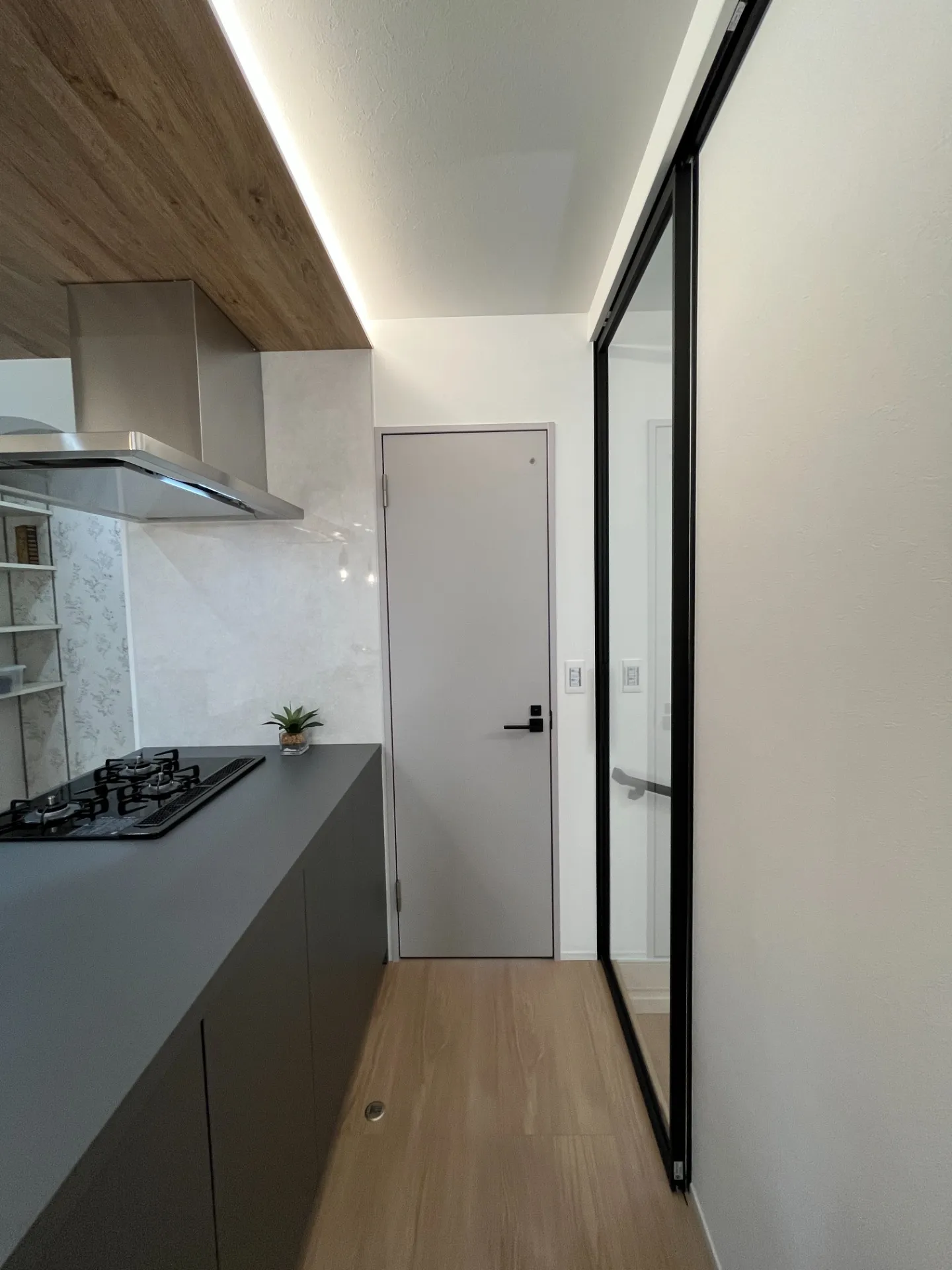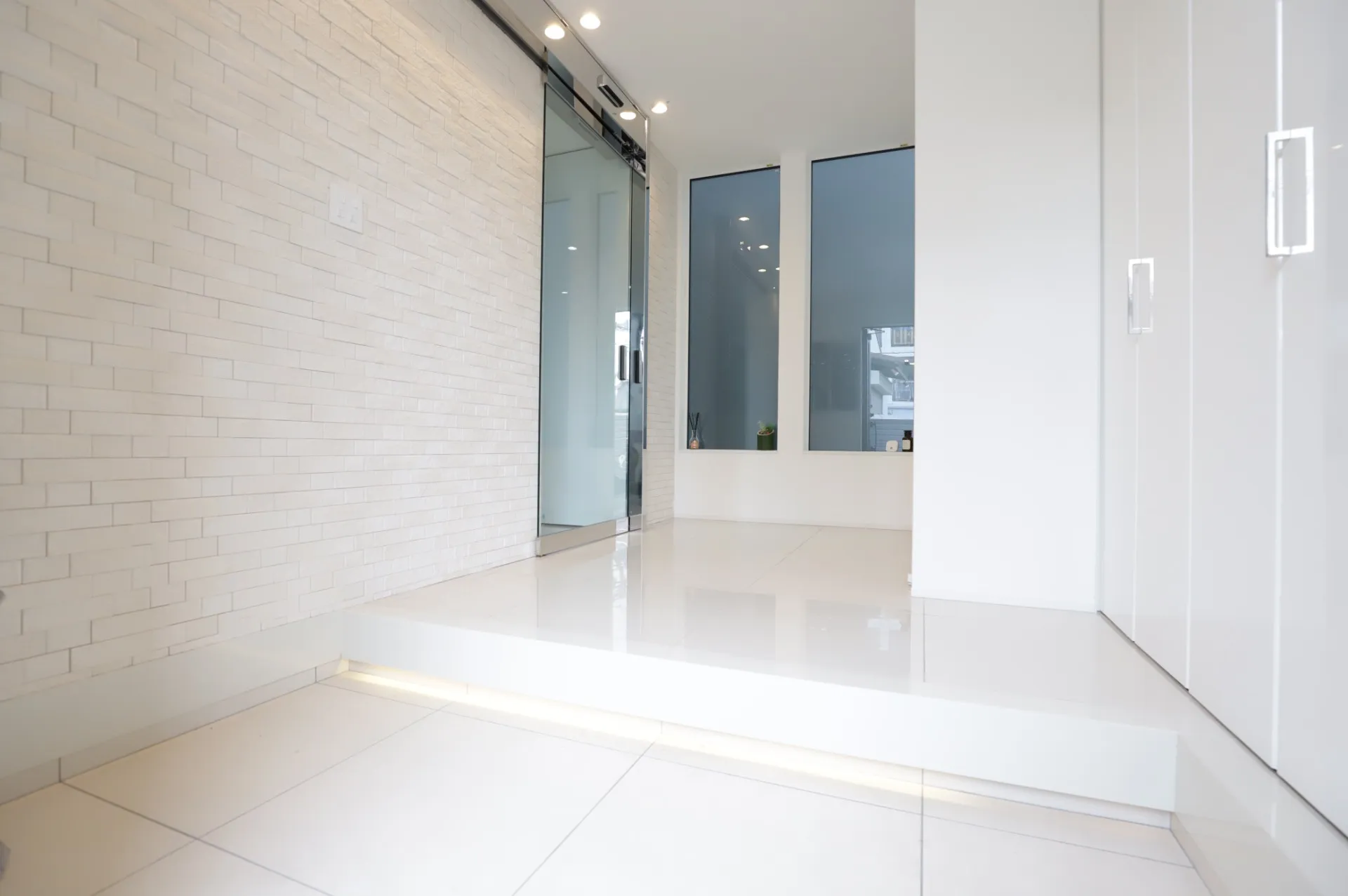 - フレームレスのミニマルなガラスドアで、モダンな空間をスッキリと