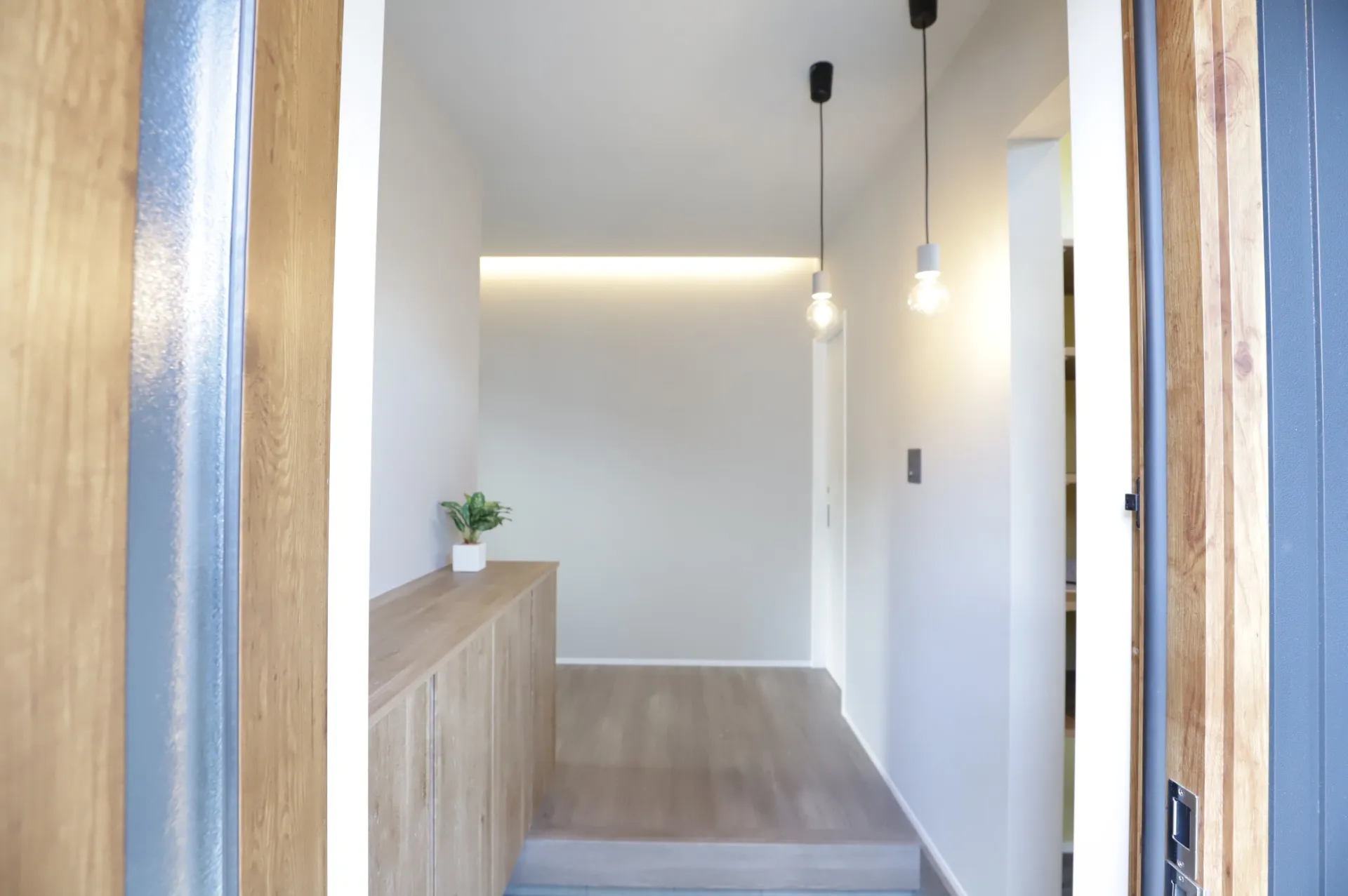 明るすぎず、暗すぎず、ちょうど良い灯りが玄関には最適です。間接照明や足元灯、ダウンライトを取り入れると、柔らかな光で迎えることができ、夜の安全性も確保できます。