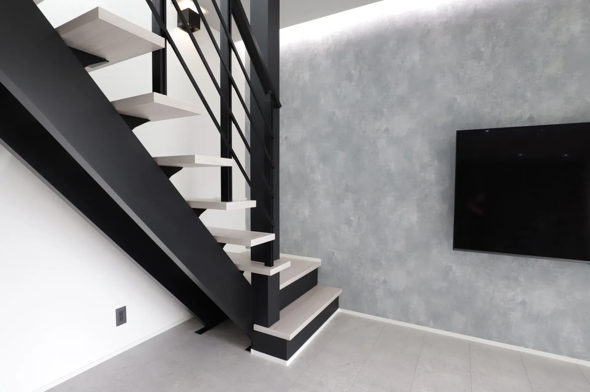 - ブラックのアイアン → 階段や吹き抜けを引き締めるモダンな印象