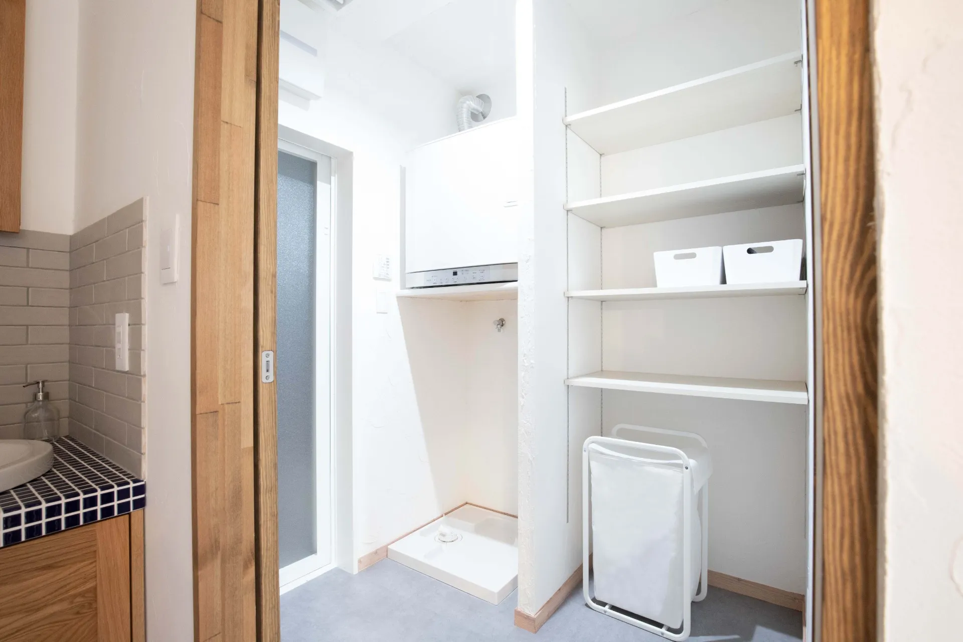 部屋干しを成功させるためにまず大切なのが、どこで干すかという点です。おすすめなのは、洗濯機のある洗面脱衣室やランドリールームの近く。洗う、干す、たたむまでの動線が短くなり、毎日の家事がスムーズになります。